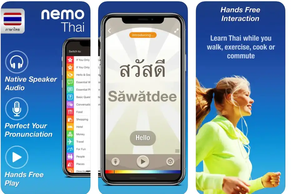 | Nemo Thai | iOS, Android | Free / $9.99 one-time | Offline travelers | Flashcards, voice recording |