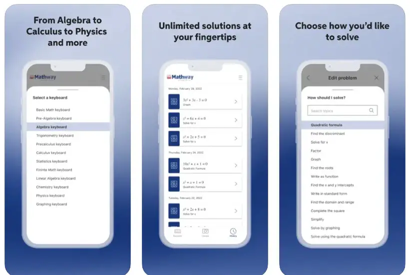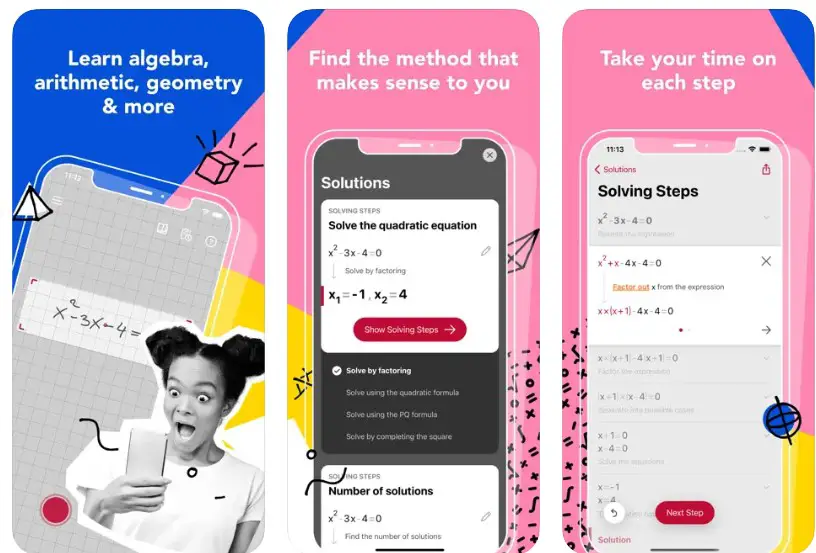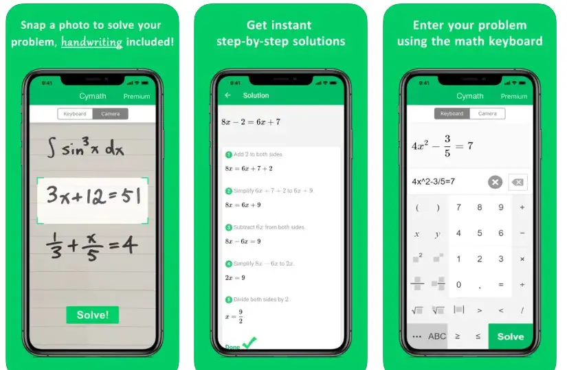 | Cymath | Lightweight solver, step-by-step guides, multilingual | Free with premium ($4.99/month) | Quick checks on basic to intermediate algebra |