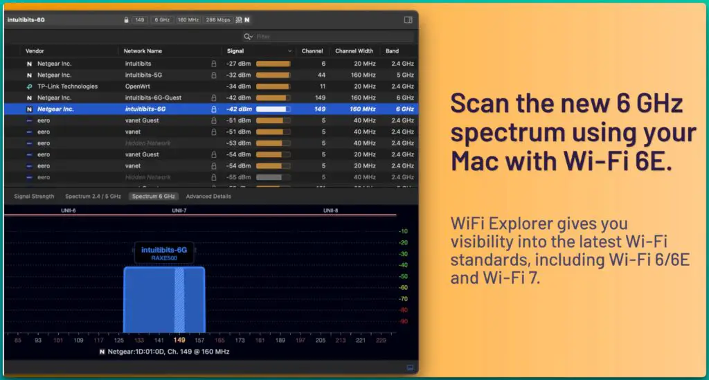 | WiFi Explorer | macOS | $19.99 one-time for standard; Pro $99.99 | Mac-focused diagnostics and visualization | Visual channel graphs, signal-to-noise ratios, configuration troubleshooting, 802.11ax/be support | 9 |