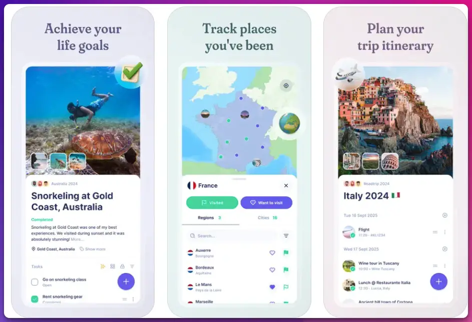 Evolving significantly by 2025, this app combines goal tracking with practical features like cost splitting and AI-generated suggestions, making it a comprehensive companion for globetrotters or anyone with location-based dreams.