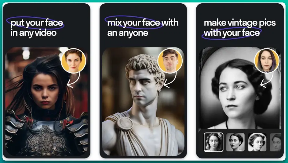 | Reface | Video/GIF swaps, viral memes | Free with in-app purchases | 9 | Instant, fun mobile results |