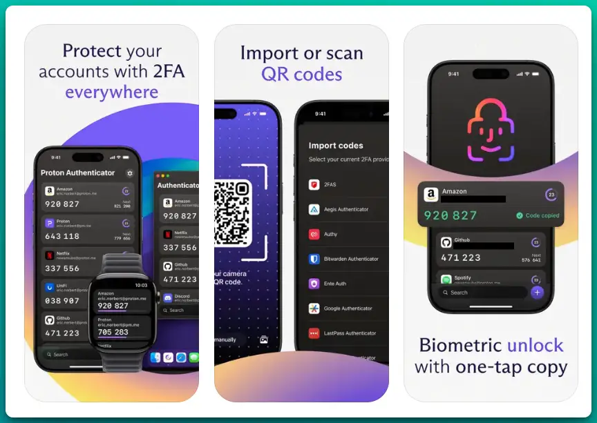 Proton Authenticator’s E2EE and no-tracking policy reduce data exposure. Compared to Google Authenticator’s basic setup, these add proactive defenses, but always pair with anti-phishing tools for full protection.