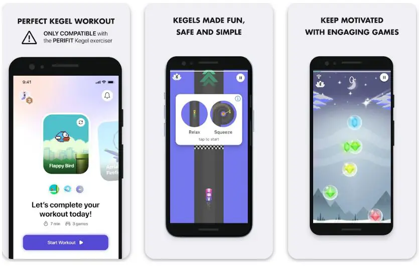 - 12+ Gamified Workouts: Control games (e.g., Flappy Bird-style) with pelvic contractions, making training fun.