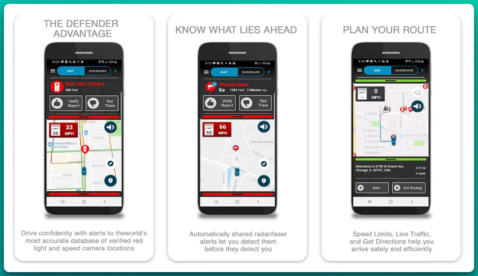 - Defender Database Access: Verified alerts for red-light and speed cameras worldwide.