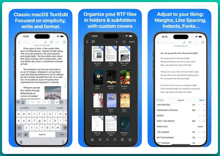 Typographic Excellence: Uses the Nitti typeface for optimal readability. I found the text clearer on my iPhone’s Retina display compared to other editors.