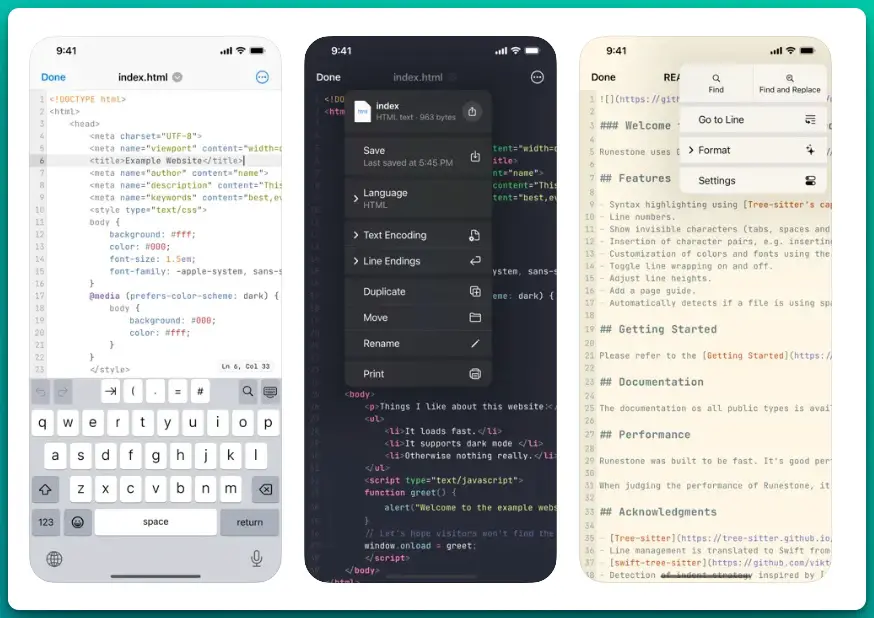 Best Free Option: Runestone (Free) – Lightweight coding with syntax highlighting. I tweaked the CSS on iPhone without cost.